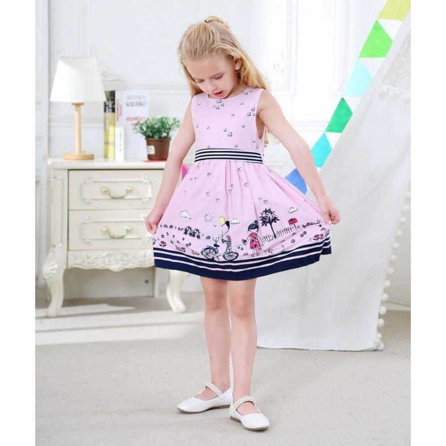 ワンピース ノースリーブ キッズ 女の子 女児 ガールズ 子供 かわいい おしゃれ リボン ピンク プリント イラスト お出かけ 膝丈 ハート プラスナオ Paypayモール店 通販 Paypayモール